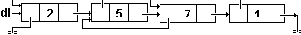 Графическая интерпретация метода связанного хранения списка F=< 2,5,7,1 >
